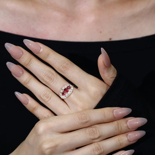 Unique Ruby and Moissanite Cluster Ring Victorian Style Evil Eye Ring