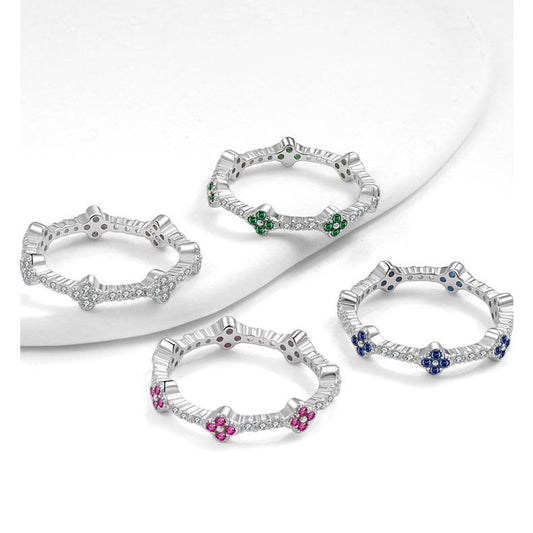 Multicolor Sapphire Flower Stackable Eternity Ring