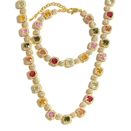 Candy-colored Sweet Square Tourmaline Necklace