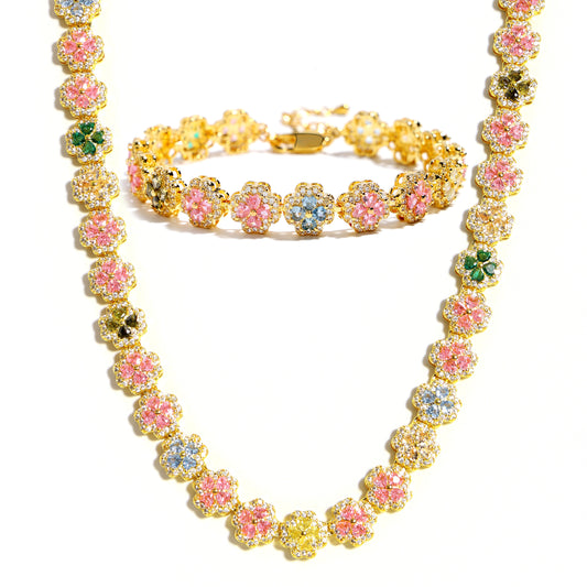 Pink Blossom Garden Tourmaline Charm Necklace