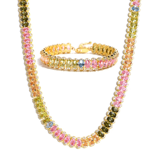 Sweet Macaron Rainbow Gemstone Necklace