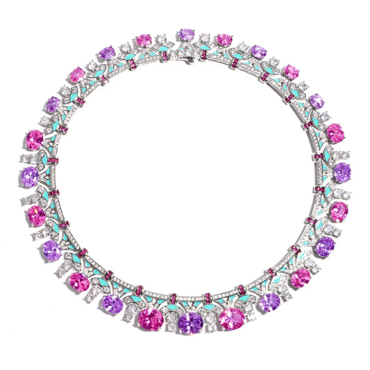 Baroque Bloom: Oval Amethyst & Pink Topaz Statement Necklace