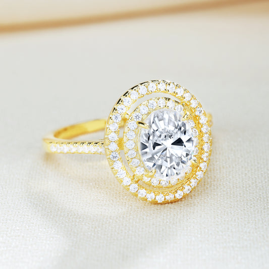 Honorable Double Halo Three Shank Cushion Cut Ring