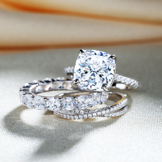 Gorgeous Cushion Cut 3 Pieces Ring Set