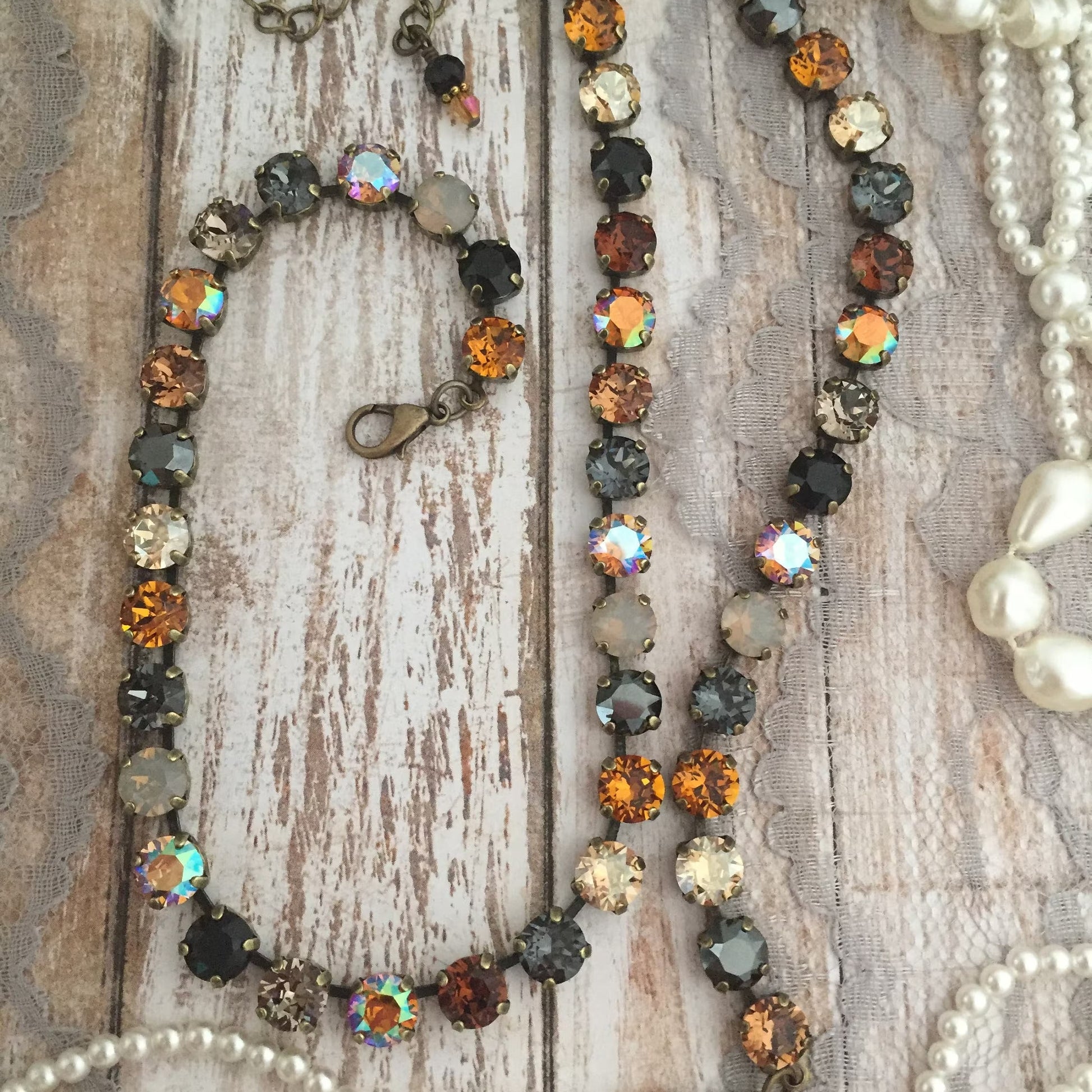Autumn Cognac: Champagne & Caramel Crystal Tennis Necklace