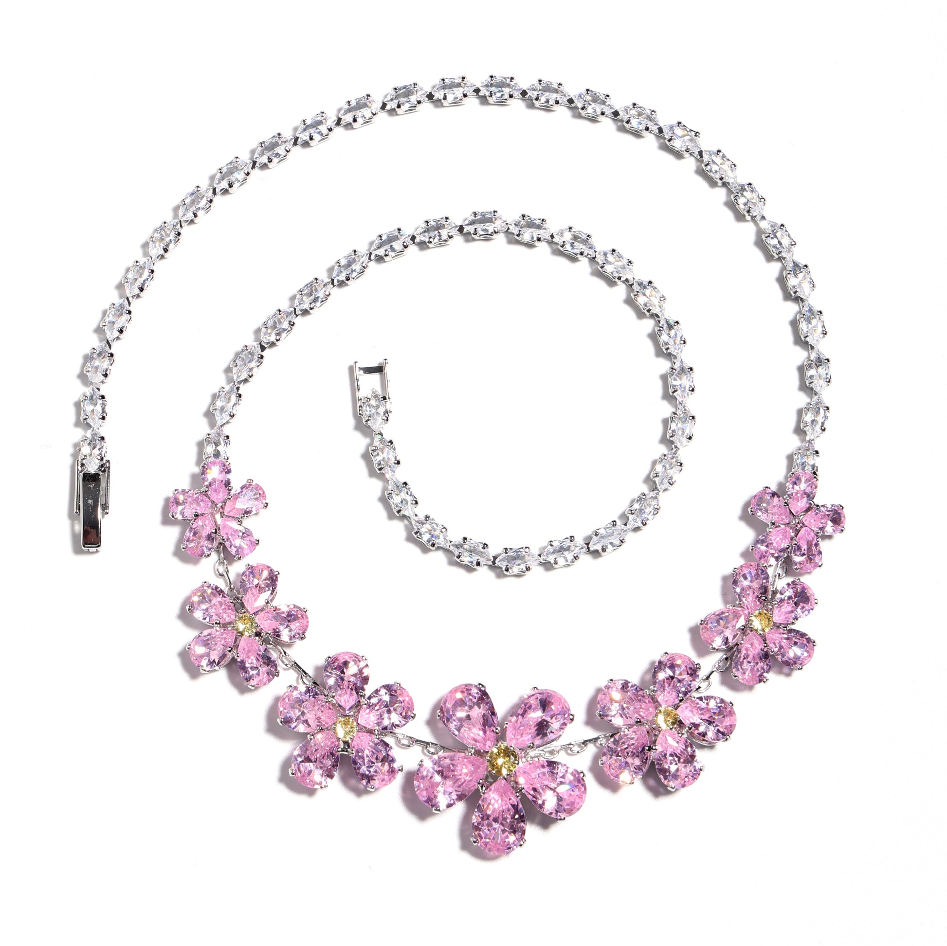 Blossom Cascade Graduated Pink Diamond Flower Necklace