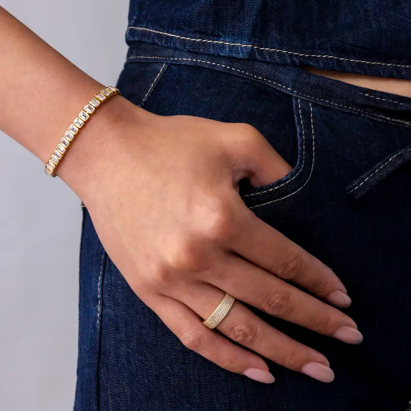 Gold Plated Emerald Cut Tennis Bracelet for Women Classic Cubic Zirconia Eternity Bracelet