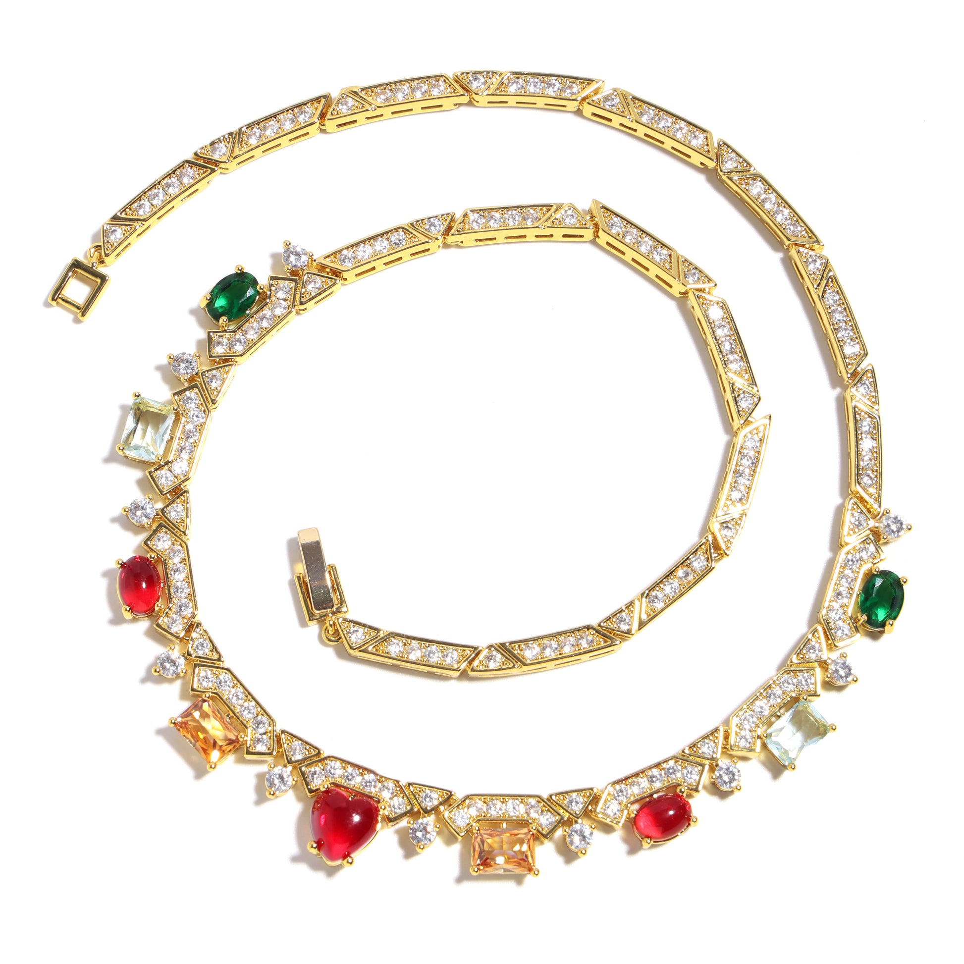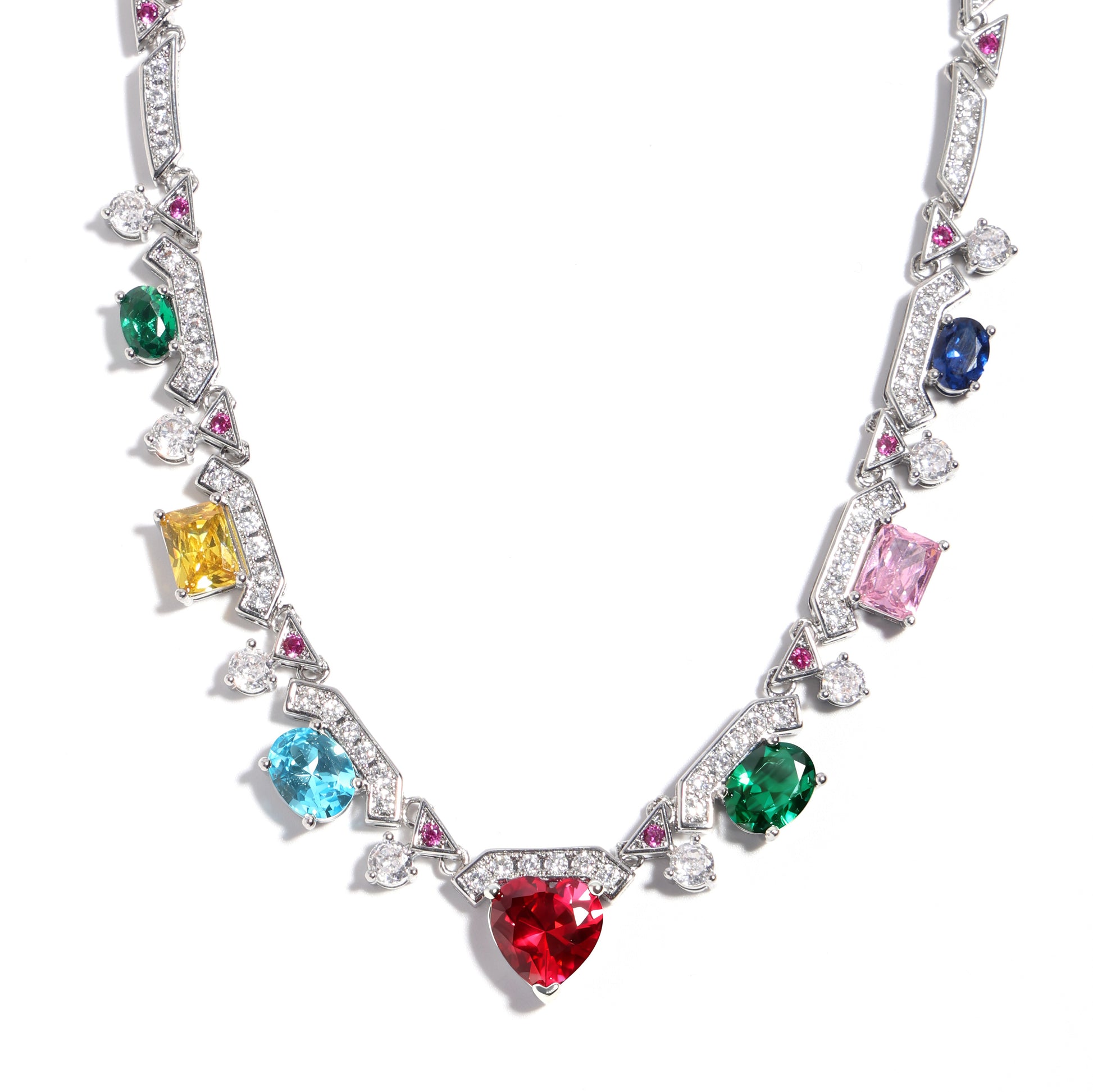 Heartfire Garden: Red Heart & Rainbow Gemstone Necklace