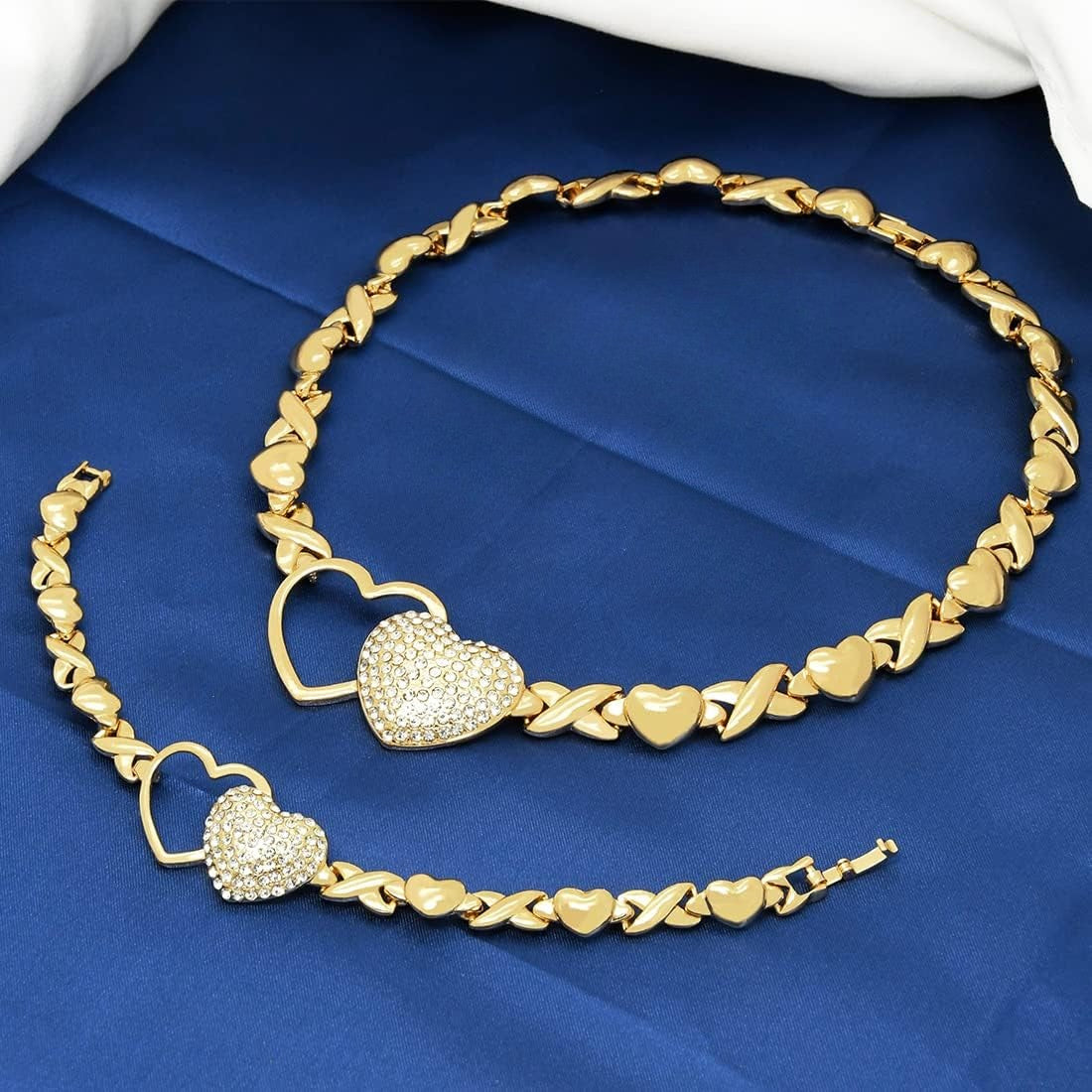Hollow & Diamond-Paved Double Heart Pendant XO Chain Necklace